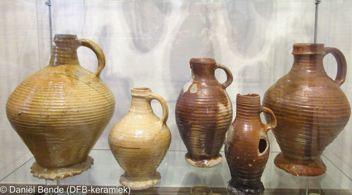 In other parts of the Lower Rhine region such as Cologne, Langerwehe, Siegburg, Mayen, Westerwald and Frechen, ceramics production and thus trade is also getting back on track. From around 1200, high-fired pottery was also made in the area around Raeren (in present-day Belgium, near Aachen in Germany). Here, in particular, pots, cups and jugs are now being made again on the wheel.