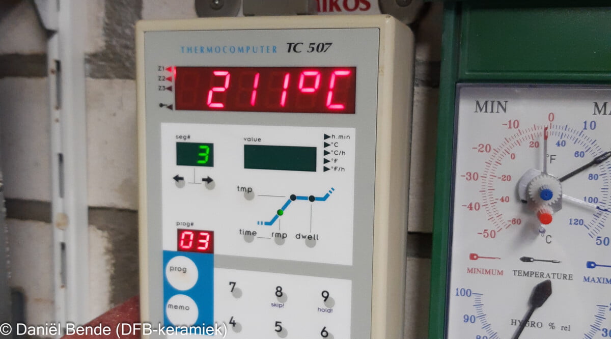 Of course, that couldn’t go on any longer 🙂 Fortunately, salvation was at hand with the arrival of the kiln controller, or the microprocessor as we proudly called it at the time. At the beginning of this century, I also bought one: the Bentrup TC507. I was able to preset the entire firing program from start to finish. The only thing that was left for me to do was turning on the kiln.