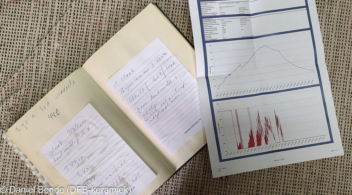 Lucie Rie and her team had to operate the kiln completely manually, including determining the moment when to switch the kiln of. The get to the desired maximum, she had to observing when the cone fell. In her case, it was the Staffordshire cone 8, which reaches a temperature of about 1250 °C.
